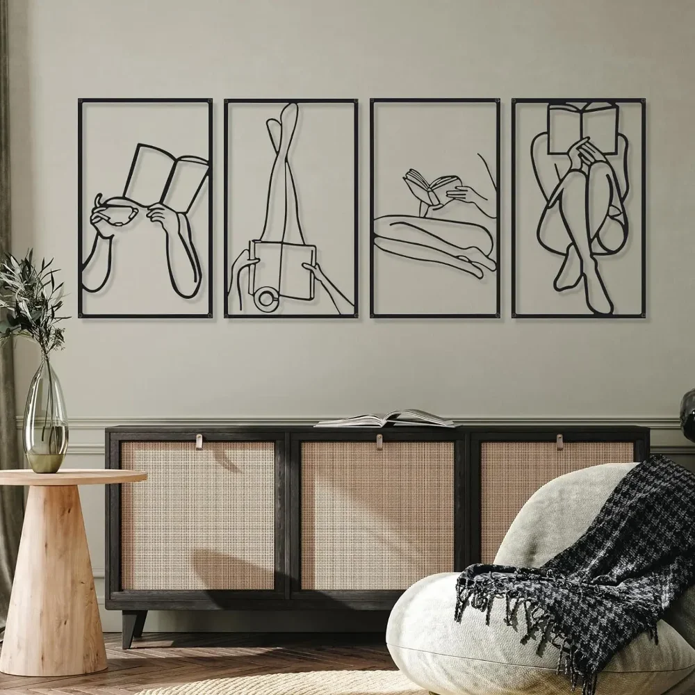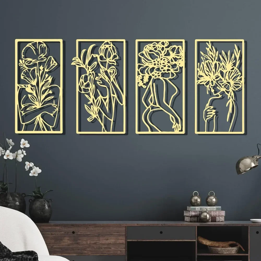 Metal Minimalist Abstract Woman Wall Art: what you will receive are 4 pieces of female single line modern wall decors, equipped with 16 pieces of screws, which can meet your daily decoration needs, and you can decorate them together or separately to add more elegance to your space Proper Size to Spice up .