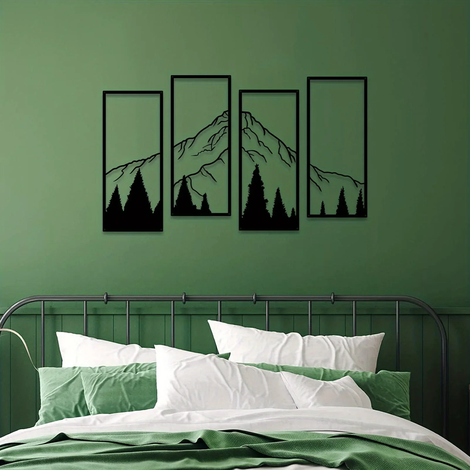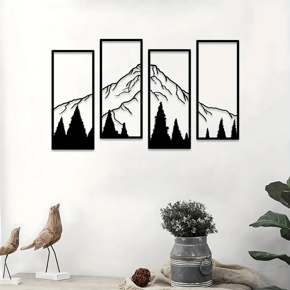 4-piece set mountain metal wall decoration ,the size is about 17 x 7 inches / 43 x 18.5 cm. High quality galvanized sheet material, The surface paint/ powder coating makes it durable and anti-rust.