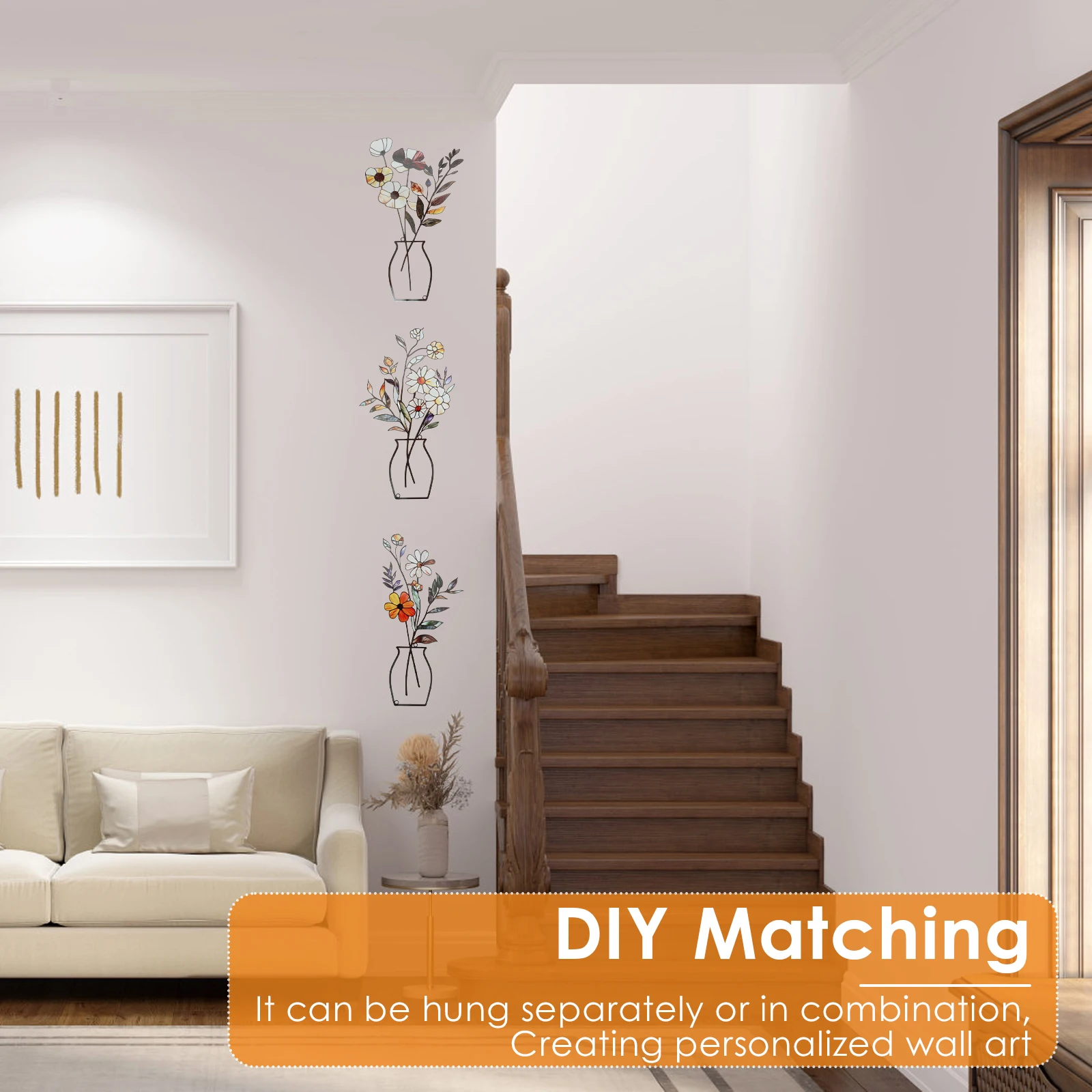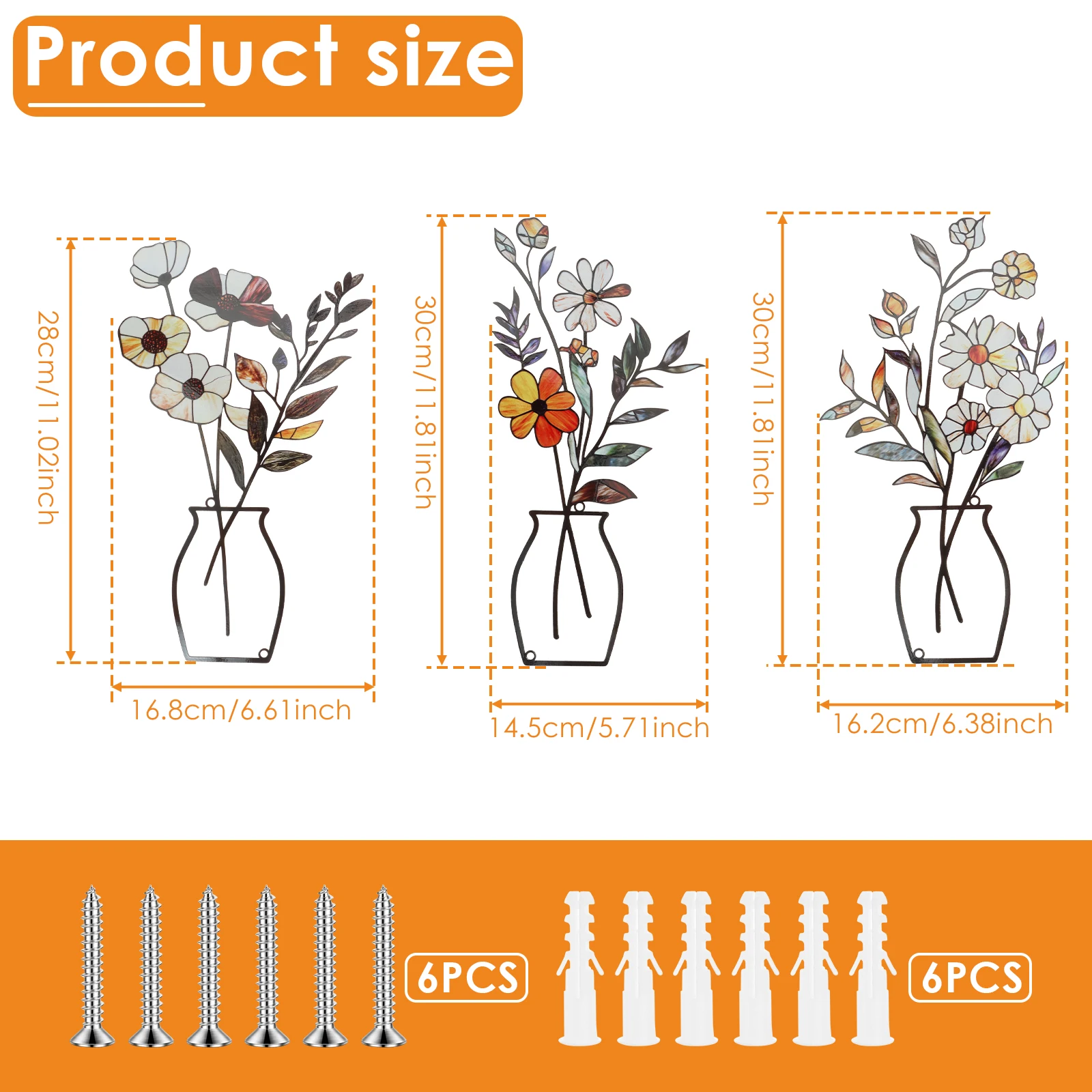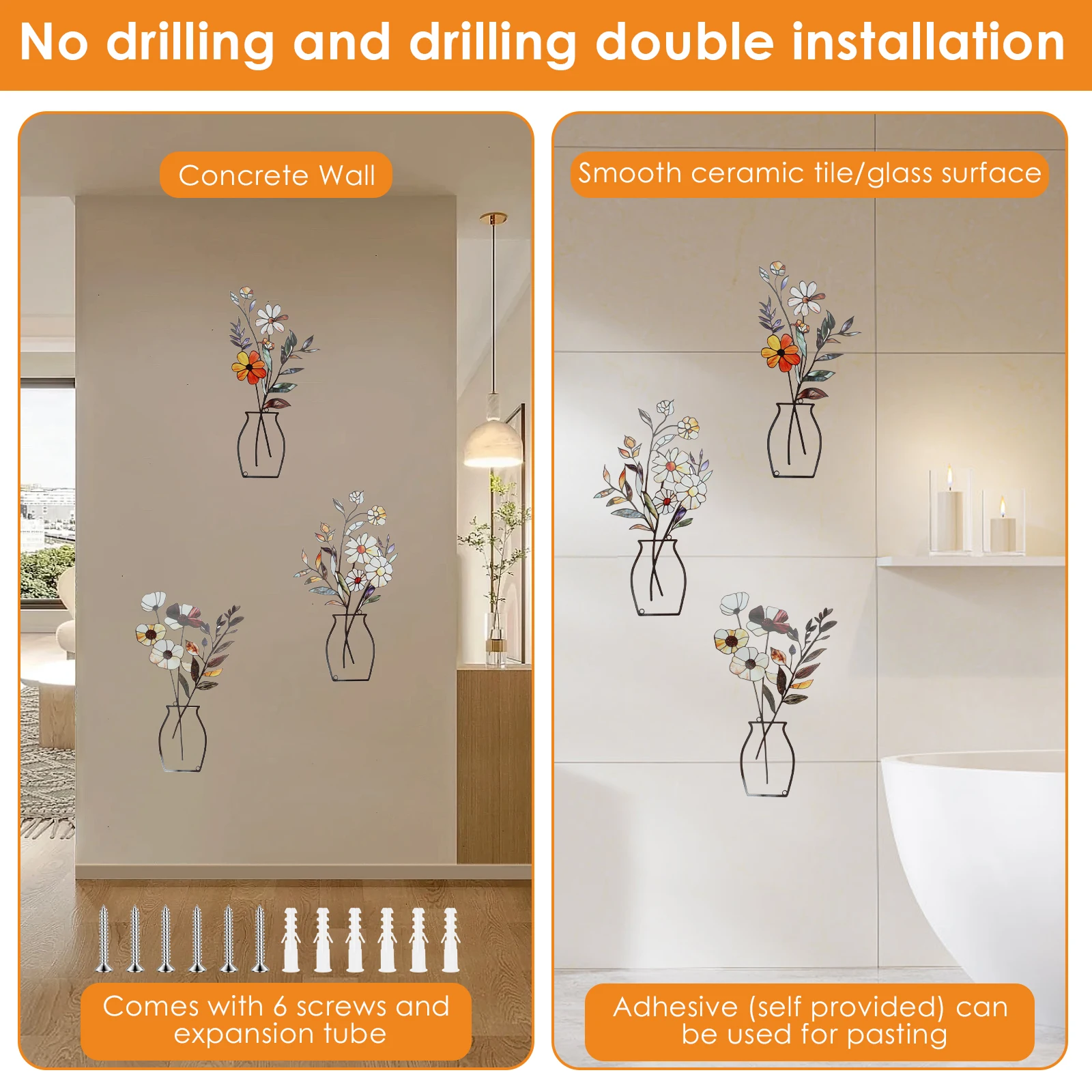 Crafted from metal iron , these wall decorations offer both durability and elegant style . The vibrant design , paired with a metal iron flower in vase silhouette , introduces a sophisticated and artistic touch to any space . Ideal for elevating the decor in living rooms , bedrooms , offices , or any plain wall in need of a stylish update .