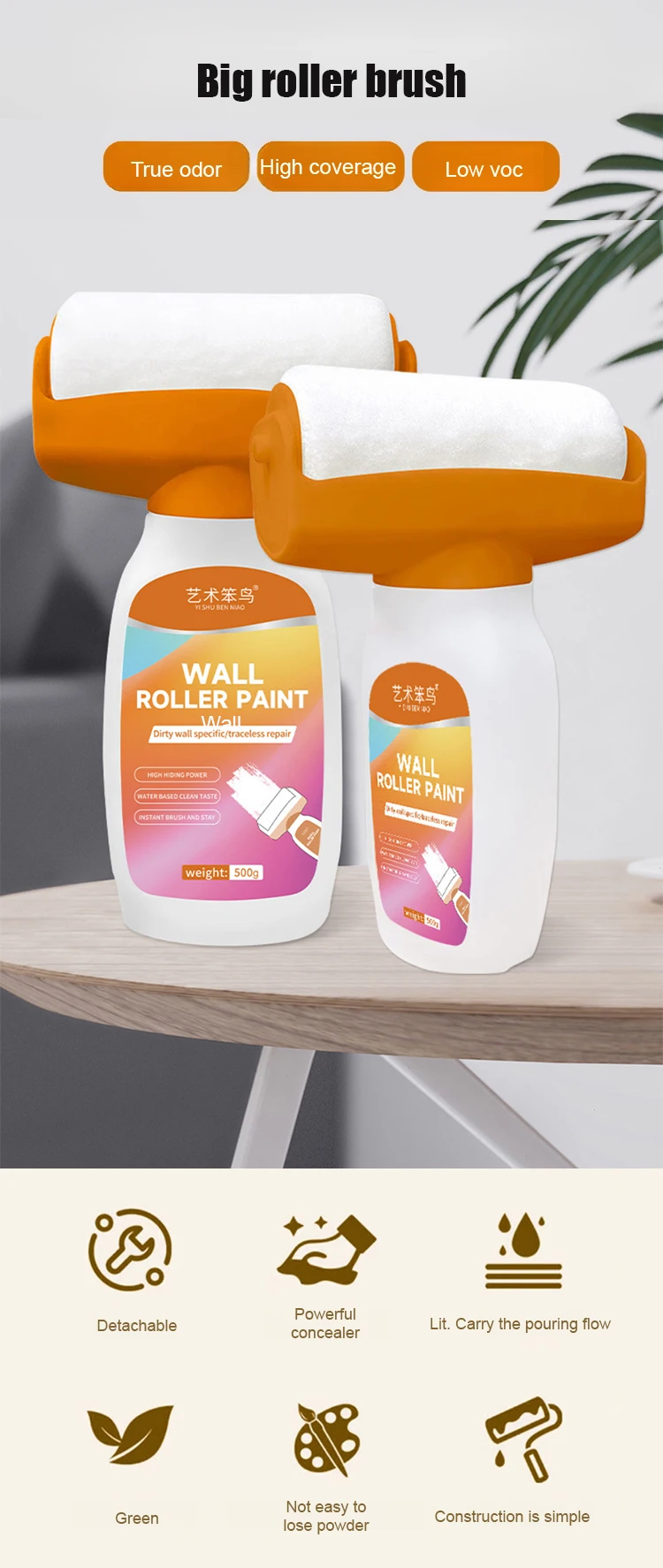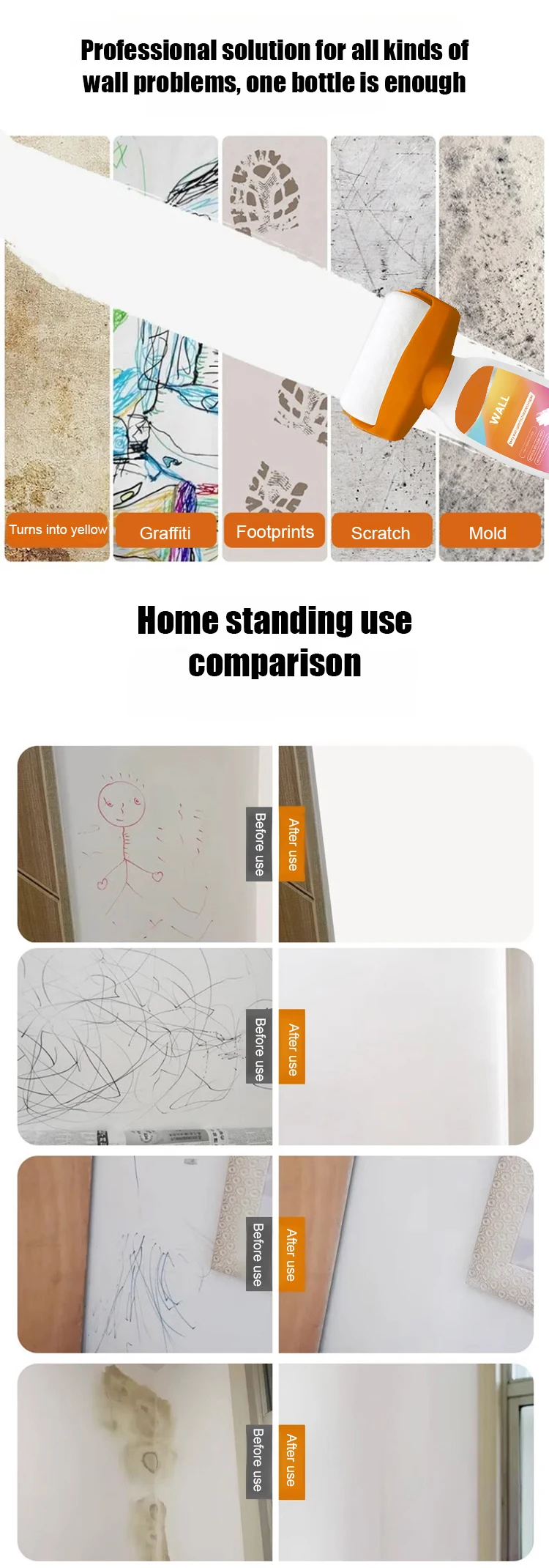 3.Easy Wall Repair: Using our Small Roller Wall Patching Brush is a one-stop solution for repairing small holes and cracks in drywall. No additional brushes are required, and this portable tool leaves no marks on the wall. It is the perfect alternative to traditional options for quick and easy wall restoration.
